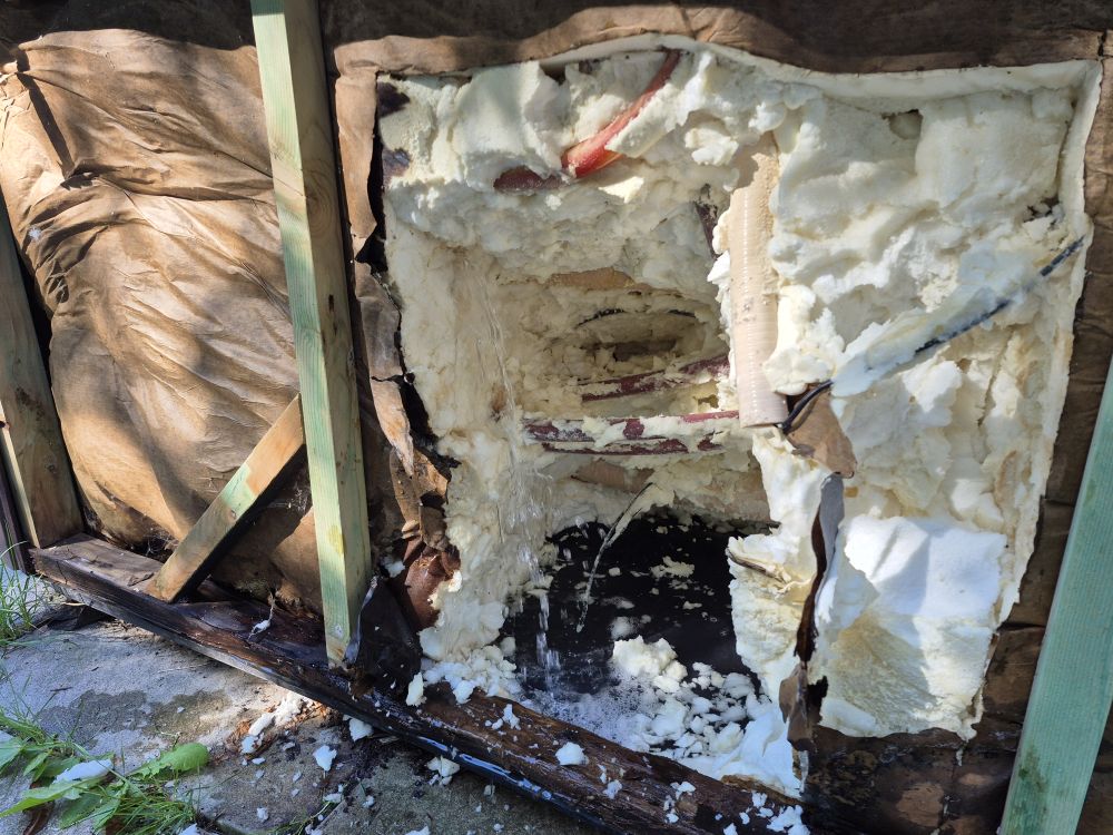 Insulation had to be removed no good once wet.